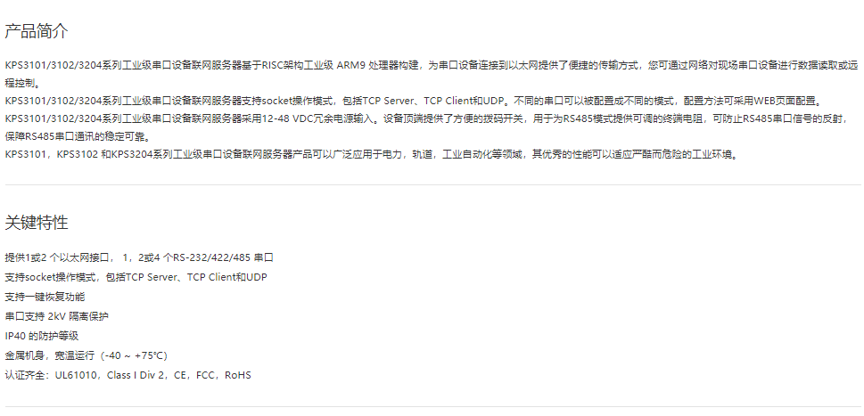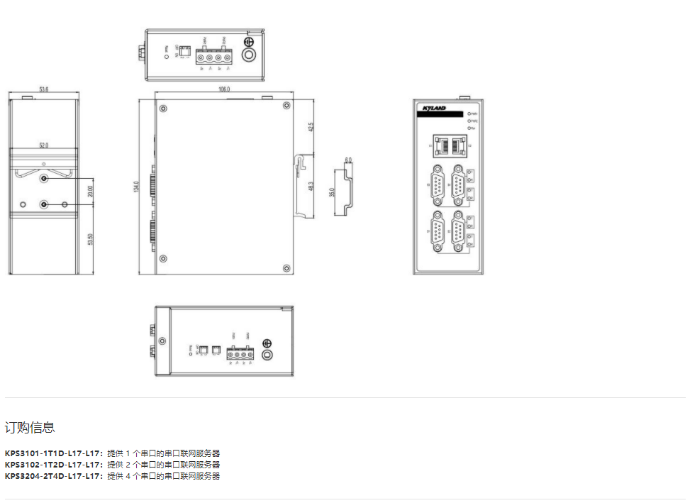 串口服務(wù)器KPS3101/3102/3204 1, 2或4 串口的卡軌式串口聯(lián)網(wǎng)服務(wù)器