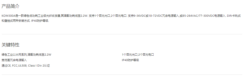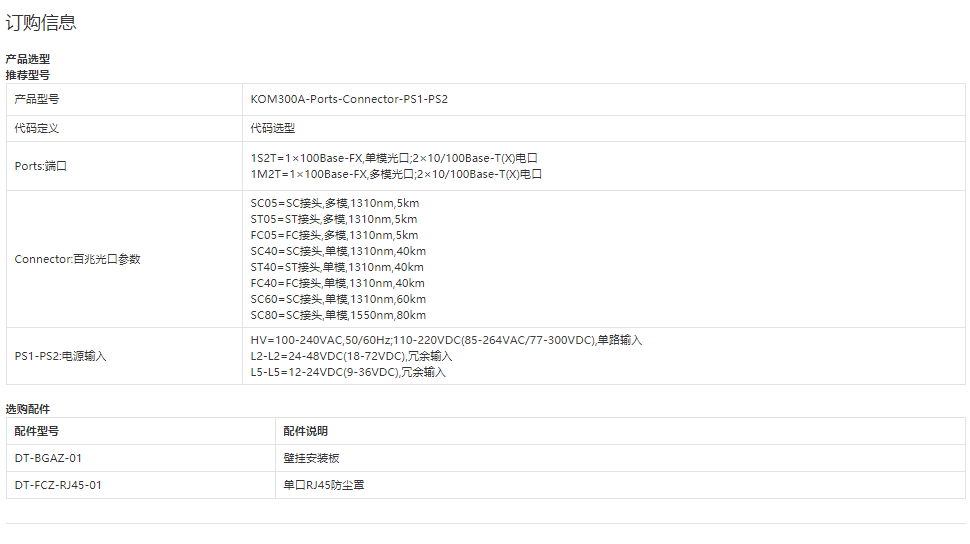 光纖收發(fā)器KOM300A 3端口卡軌式光纖收發(fā)器