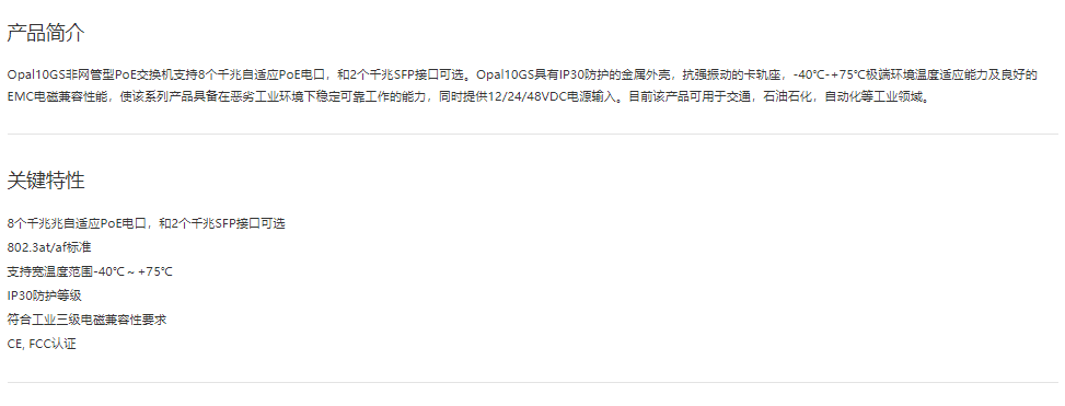 以太網(wǎng)供電(PoE)交換機(jī)Opal10GS 8/10口全千兆非網(wǎng)管型PoE卡軌式交換機(jī)