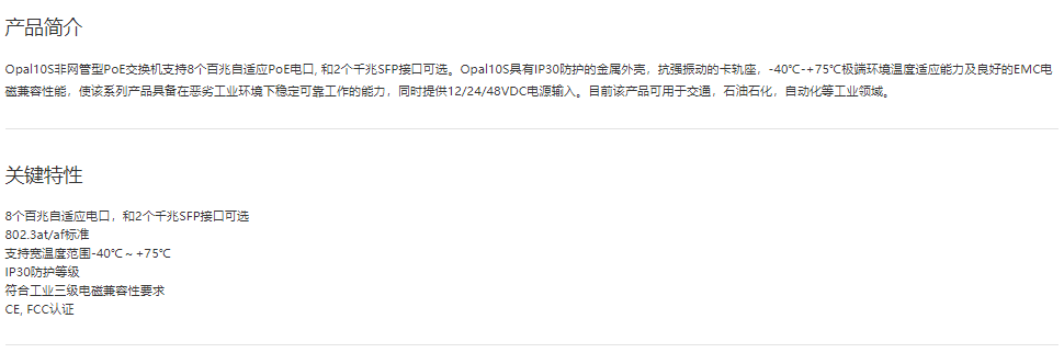以太網(wǎng)供電(PoE)交換機Opal10S 8/10口非網(wǎng)管型PoE卡軌式交換機