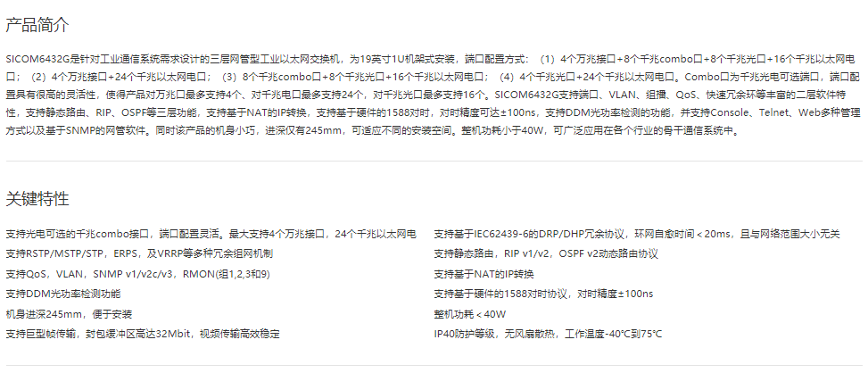 三層骨干網交換機SICOM6432G 32G+4X端口三層網管型機架式骨干網交換機