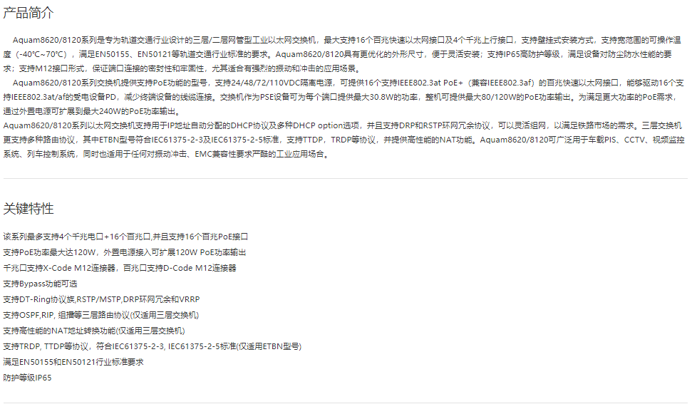 EN50155以太網(wǎng)交換機(jī)Aquam8620/8120 4G+16端口三層/二層管理型工業(yè)以太網(wǎng)交換機(jī)