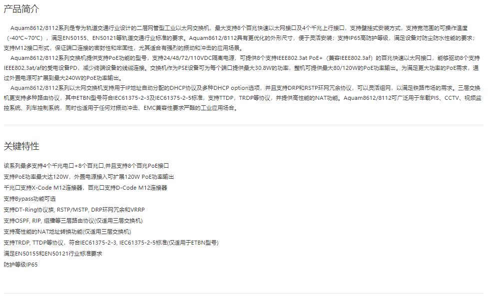 EN50155以太網(wǎng)交換機(jī)Aquam8612/8112 4G+8端口三層/二層管理型工業(yè)以太網(wǎng)交換機(jī)