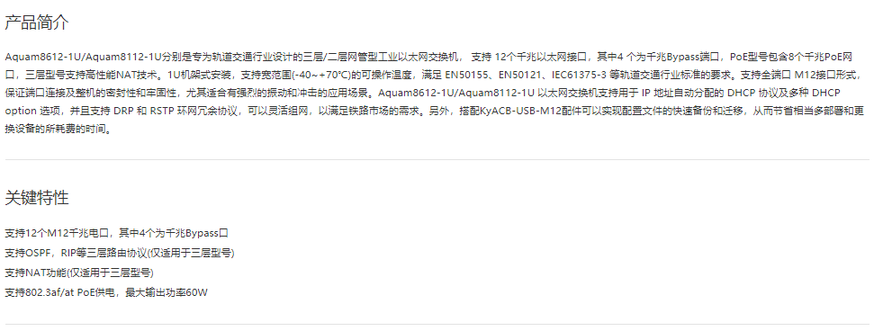 EN50155以太網交換機Aquam8612-1U/8112-1U 12G端口三層/二層管理型工業(yè)以太網交換機