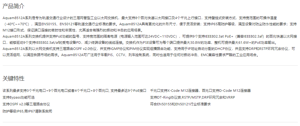 EN50155以太網(wǎng)交換機(jī)Aquam8512A 9+3G/8+4G端口三層千兆網(wǎng)管型 EN50155系列工業(yè)以太網(wǎng)交換機(jī)