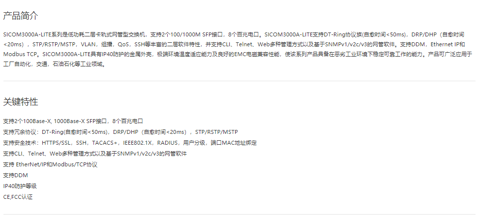 卡軌式網(wǎng)管型以太網(wǎng)交換機SICOM3000A-LITE 8+2G端口二層網(wǎng)管型卡軌式交換機